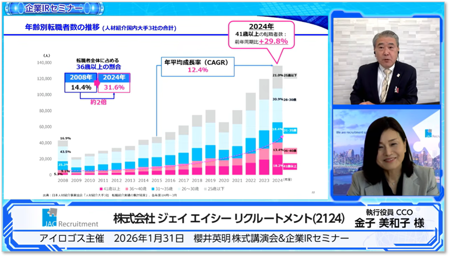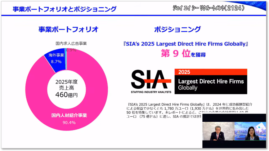 概要:ジェイ エイ シー リクルートメントの「事業概要」「4つの財務優位性」「創業50周年を迎えて」について執行役員 CCO(Chief Communications Officer) 金子 美和子が語ります。